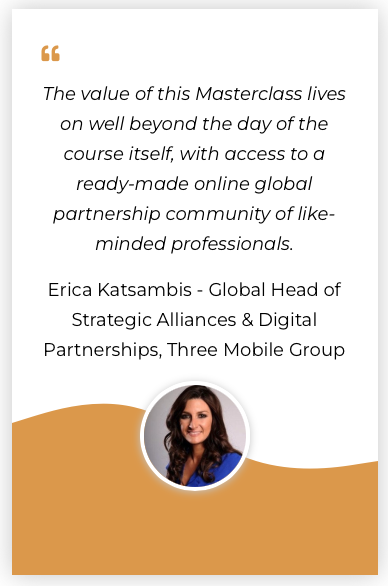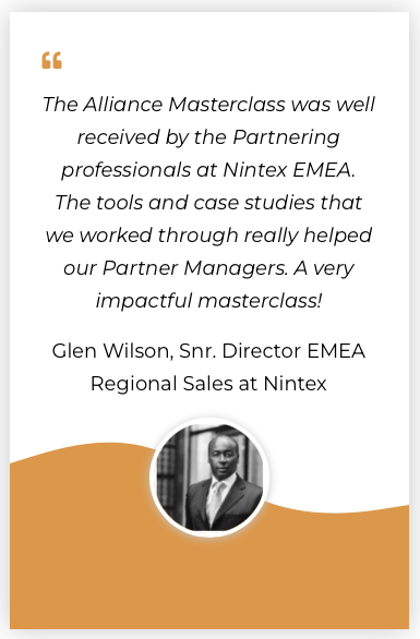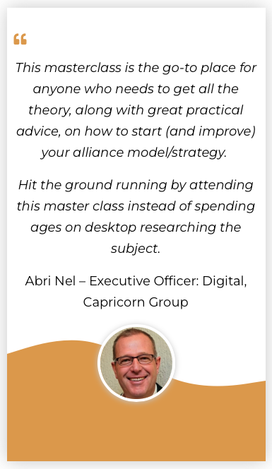 • “Alliances & Partnerships is the new leadership” and by attending the Alliance Masterclass your team will gain new leadership skills to use throughout your business.