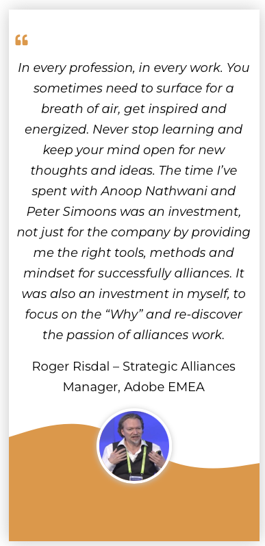 • Your team will become stellar Alliance professionals and be able to skilfully drive your important Alliances & Partnerships opportunities.
